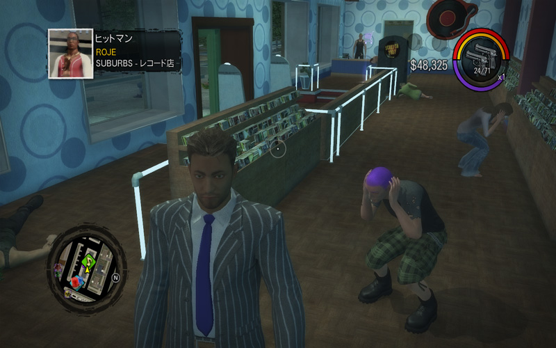 客が怯えているのは外でセインツが警察相手にドンパチはじめたからであって、私は(まだ)何もしていません。